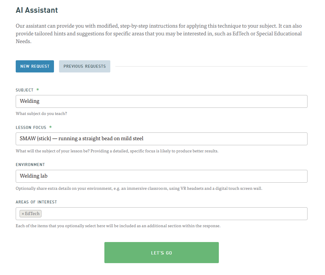 The integrated AI Assistant supports staff in adapting strategies to specific subjects, lesson topics, and teaching environments — from labs to workshops to hybrid classrooms.